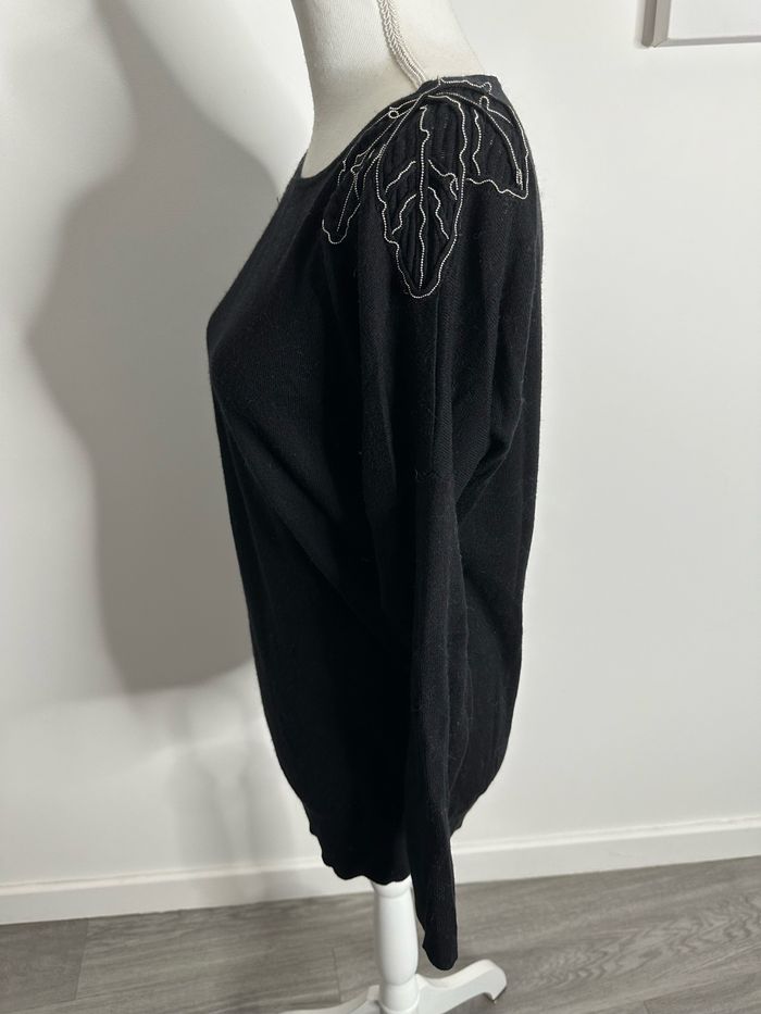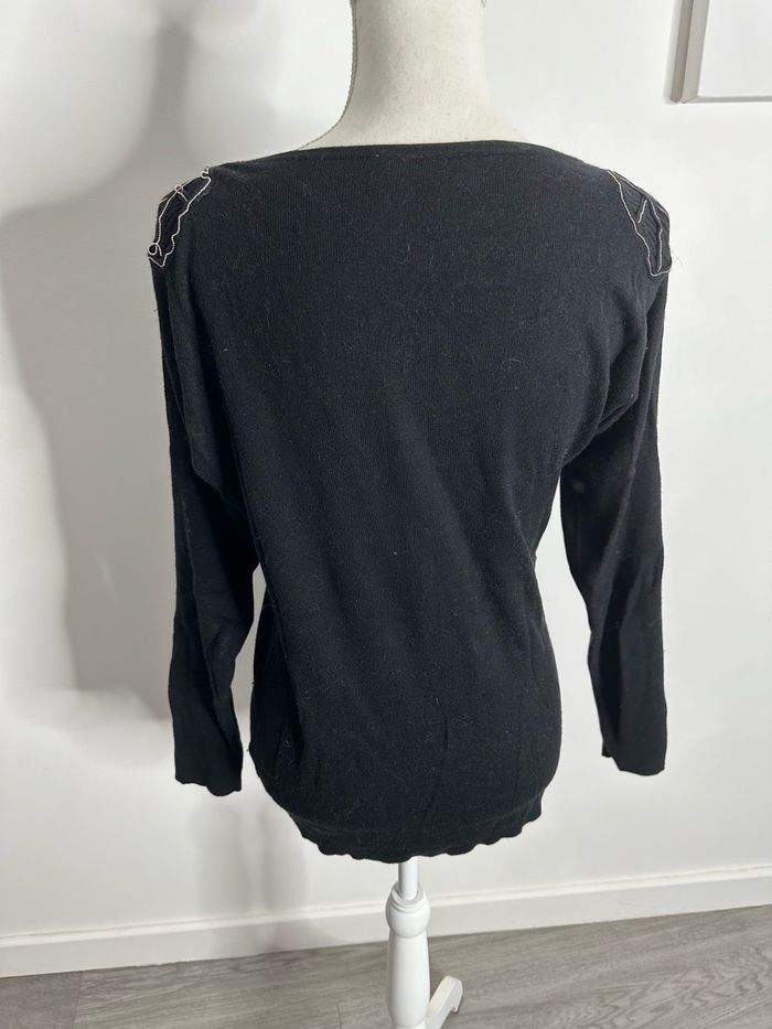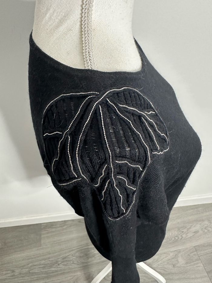 Pull noir et chaînes argentées feuilles Camaïeu T38 M - photo numéro 5