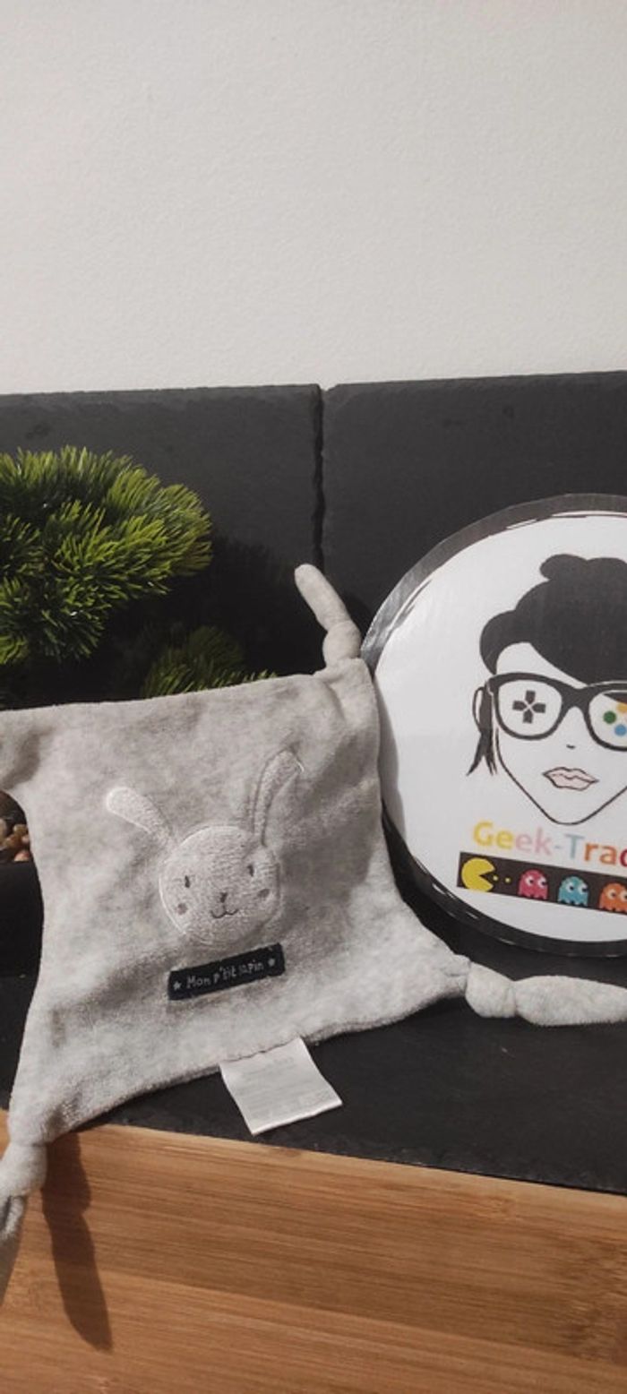 doudou plat mouchoir mon p'tit lapin gris blanc Gémo carré noeuds - photo numéro 1