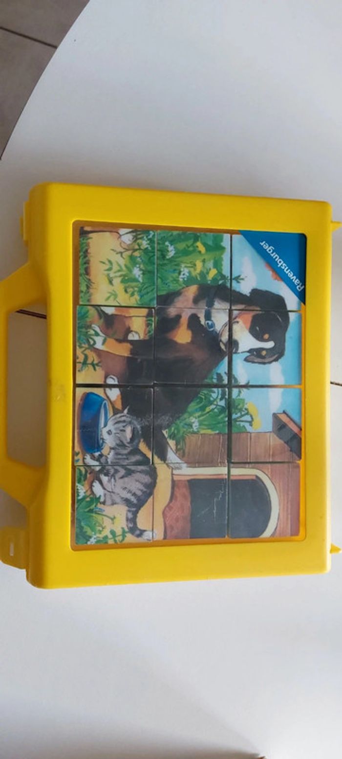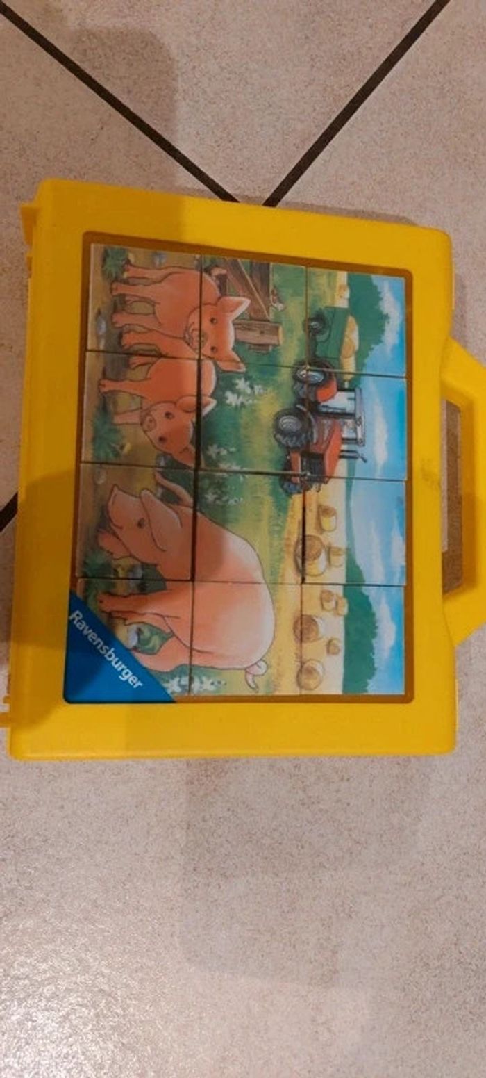 6faces donc 6 puzzles différents thème animaux ,ferme... Pratique dans sa valise à transporter