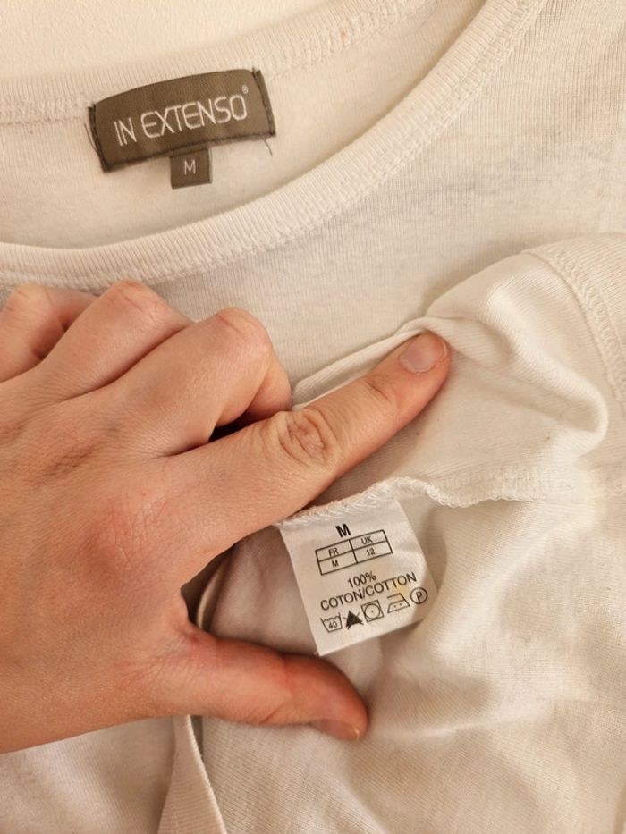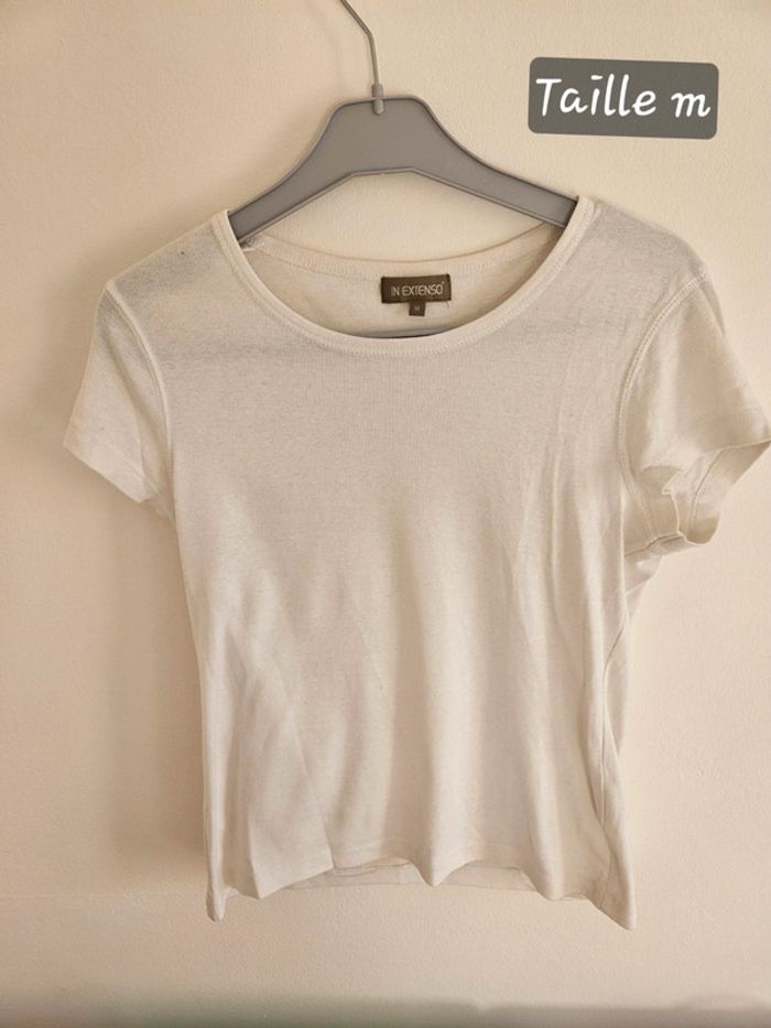 T-shirt blanc en coton, In extenso. Informations : taille indiquée M mais plutôt S ! État : très bon (jamais porté)