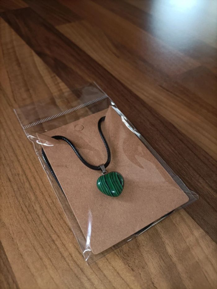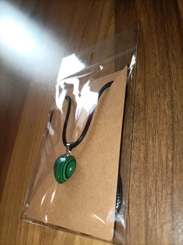 Collier neuf coeur pierre noire et verte - photo numéro 6