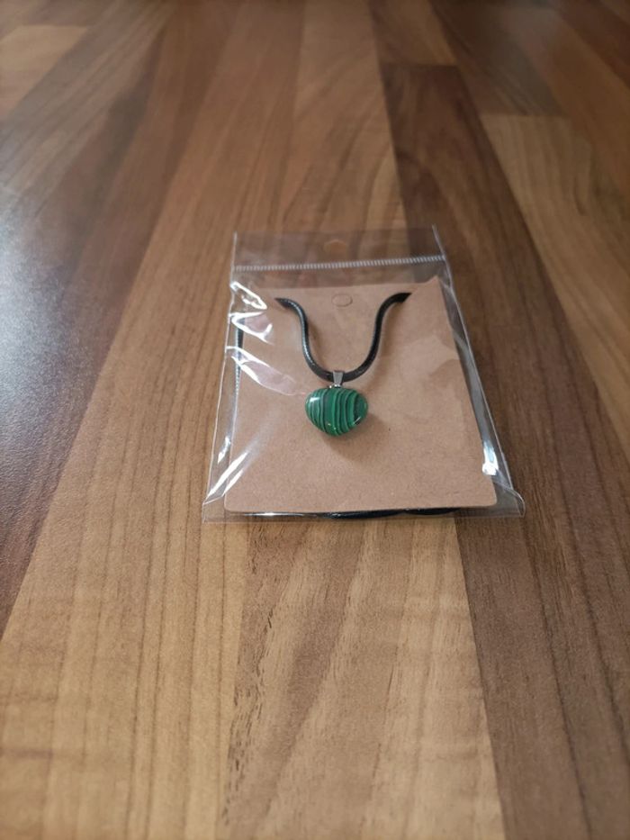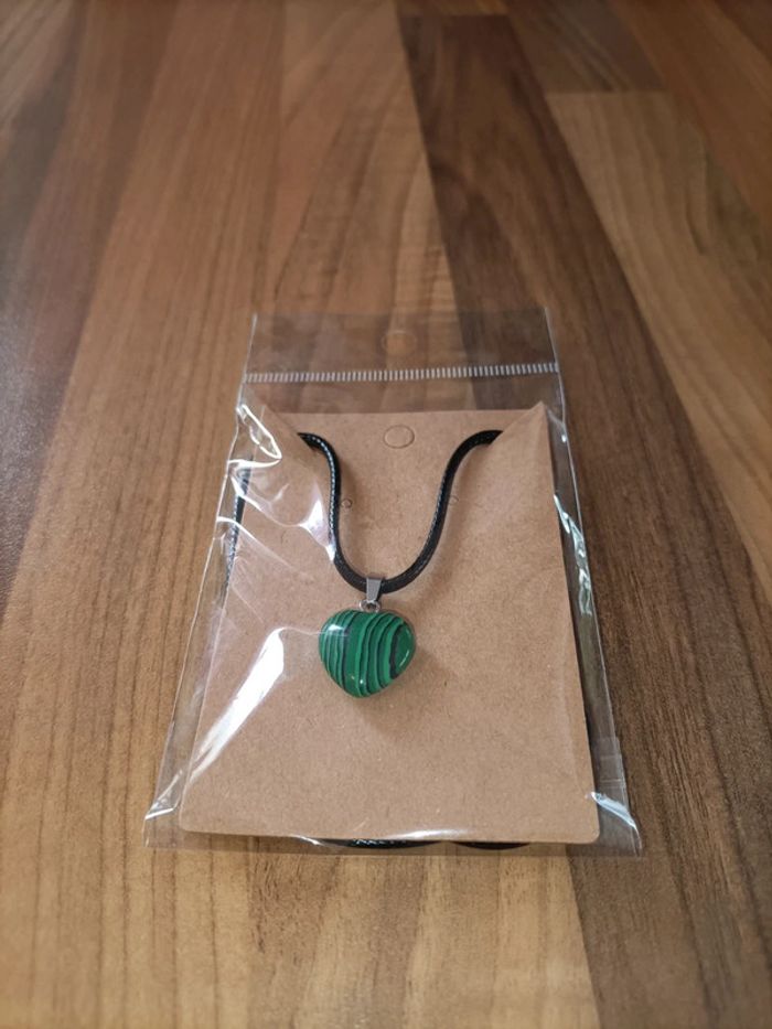 Collier neuf coeur pierre noire et verte #bijouxregaf5