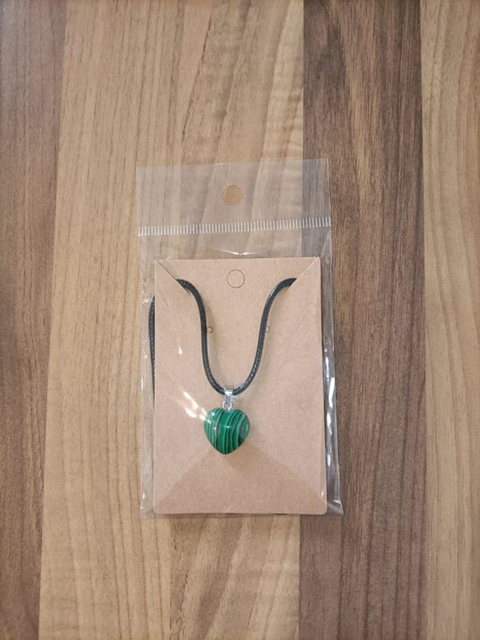 Collier neuf coeur pierre noire et verte - photo numéro 1