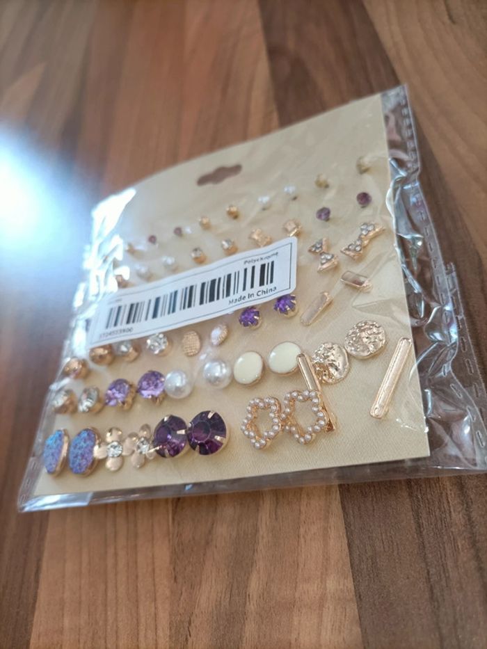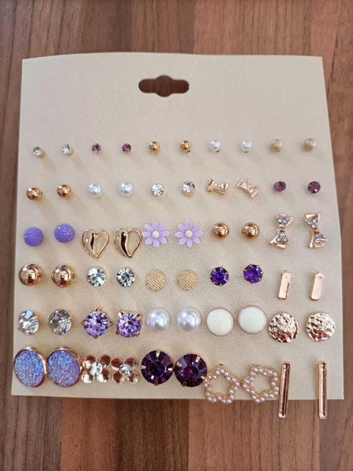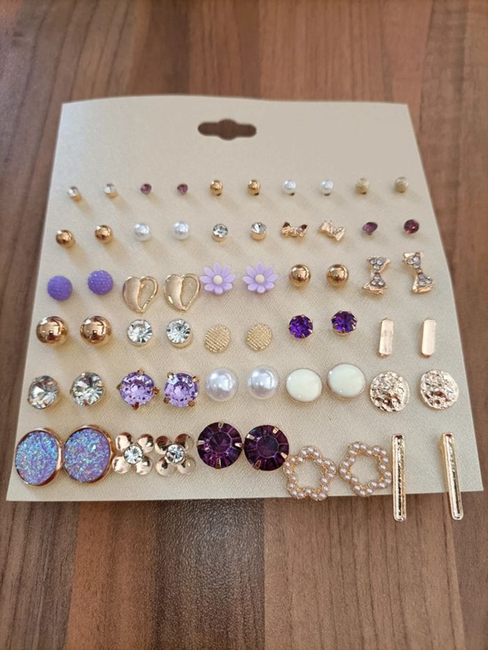 Lot neuf 30 jolies boucles d'oreilles ton or violet - photo numéro 3