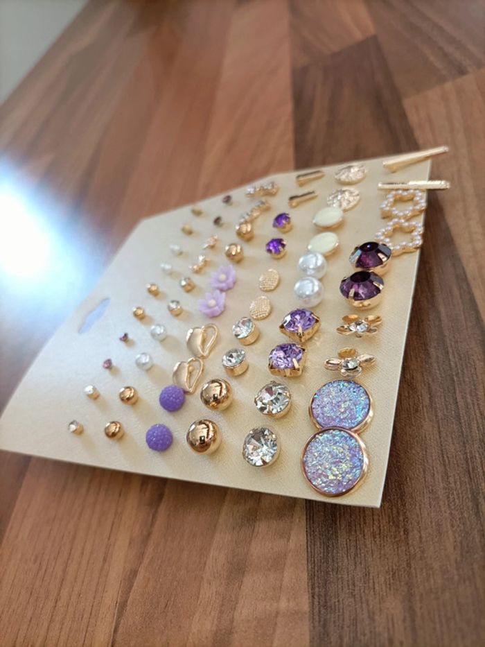 Lot neuf 30 jolies boucles d'oreilles ton or violet #bijouxregaf5