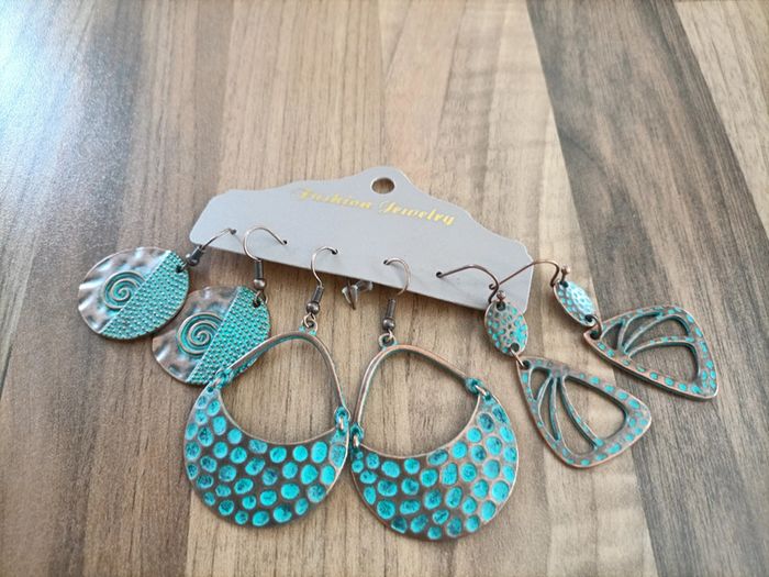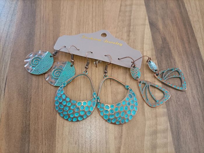 Boucle d'oreille bronze antique neuves bleues - photo numéro 4