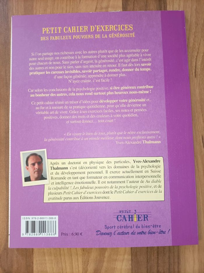 Livre neuf cahier d'exercices de générosité