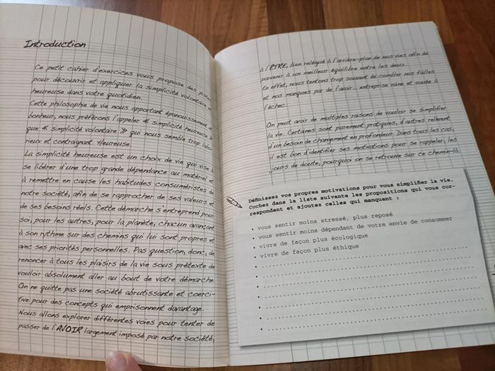 Livre neuf cahier d'exercices de simplicité heureuse