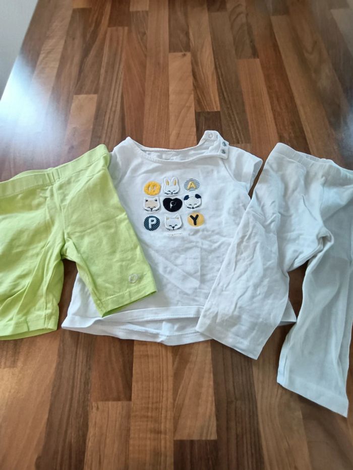 Lot 3 pièces 9 mois : 1 legging+1 pantacourt+1 tee shirt - photo numéro 1