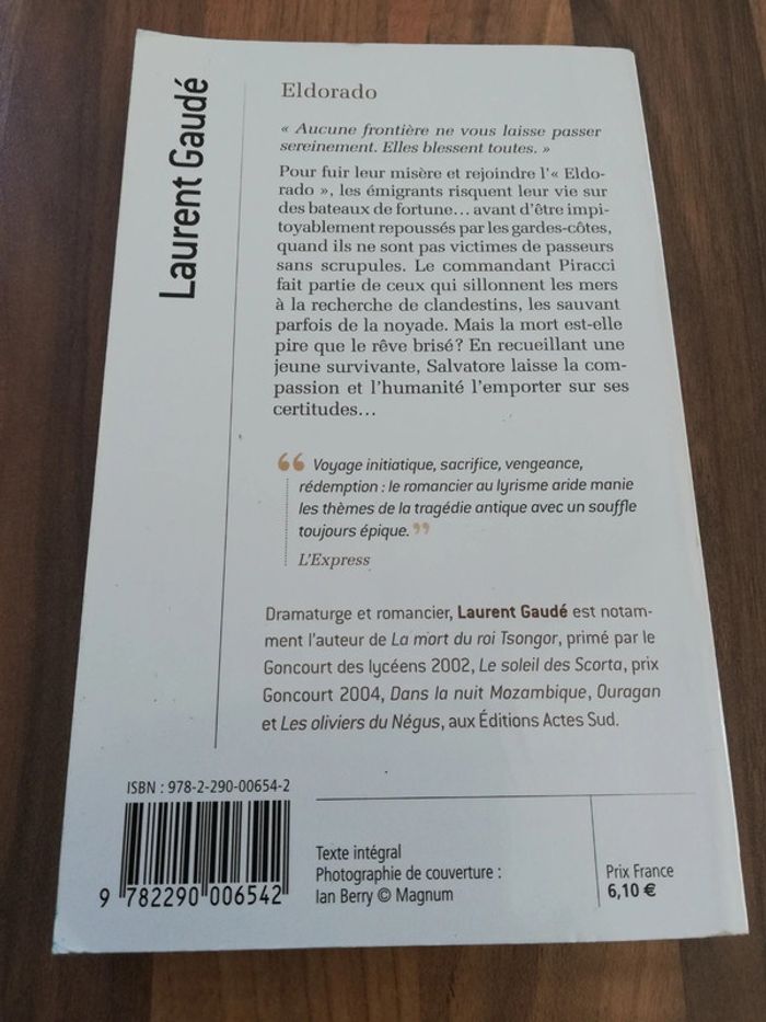 Livre Eldorado de Gaudé. Très bon état hormis la tâche d'encre verte, uniquement sur l'extérieur du livre. #livrescolaireregaf5 #rentreeregaf5 #livreregaf5
