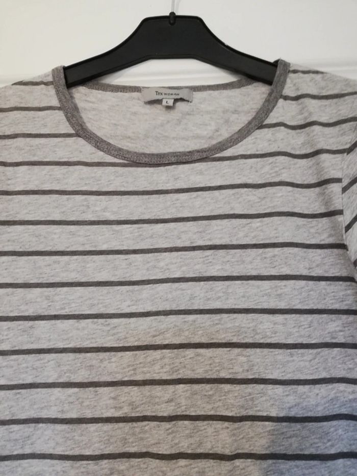 Tee shirt gris rayé TeX L #femme40regaf5 #femme3840regaf5 #femme38regaf5 #femme38hautregaf5 #femme40hautregaf5 #femme3840hautregaf5