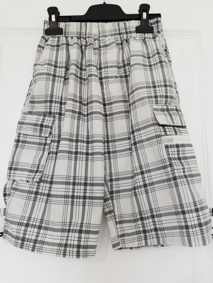 Short taille élastiquée 8 ans à carreaux gris beige. #garcon8regaf5 #garcon7regaf5 #garcon6regaf5
