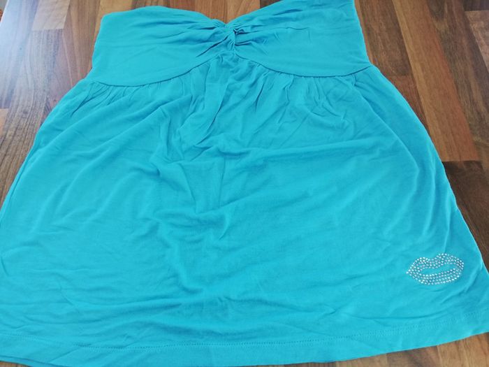 Top bleu sans bretelles avec motif bouche en strass. Jamais porté. #femme40regaf5 #femme3840regaf5 #femme38regaf5 #femme40hautregaf5 #femme3840hautregaf5 #étéregaf5