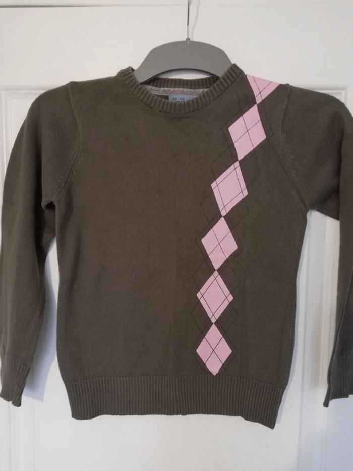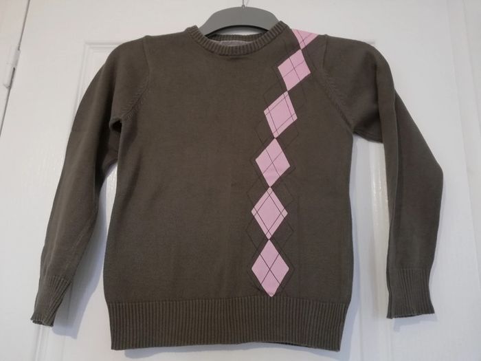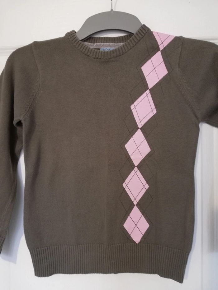 Pull marron et rose 8 ans. #garcon8regaf5 #garcon8pullregaf5 prénom écrit sur étiquette