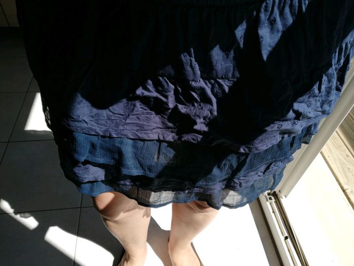 Jupe bleu marine à volant. Portée une fois. Taille élastiquée, peu se porter du 36 au 40. N'a plus son étiquette de marque. #femme36regaf5 #femme38regaf5 #femme38juperegaf5 #femme3840regaf5 #étéregaf5