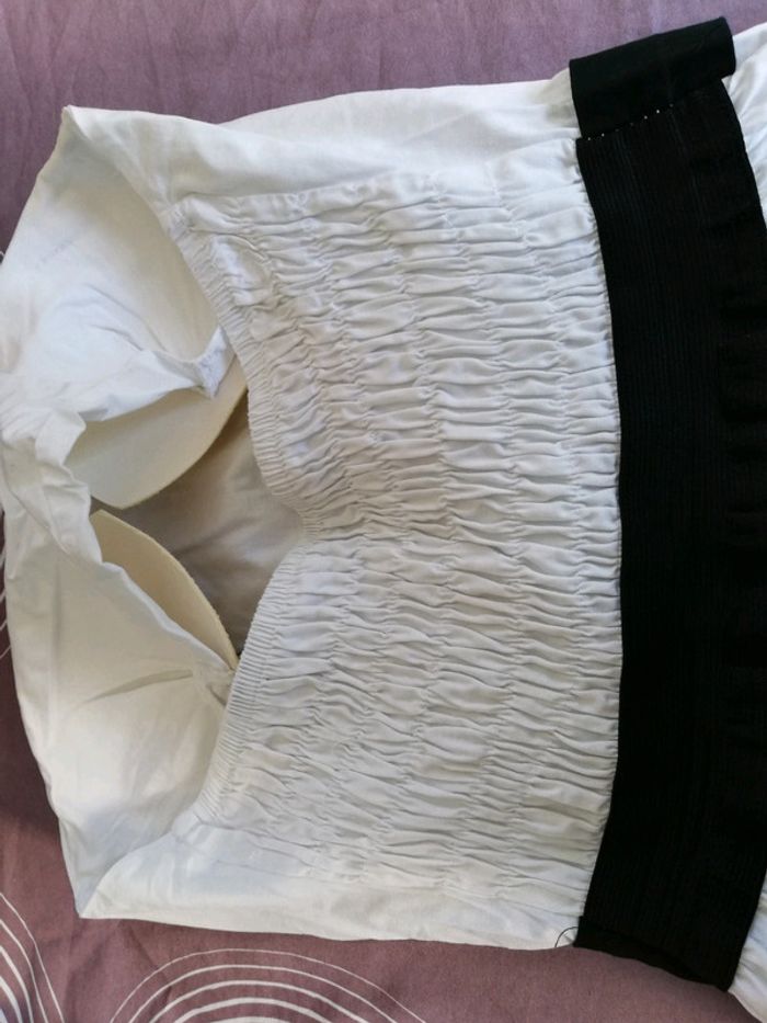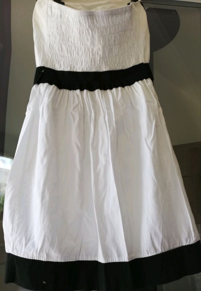 Robe bustier blanche à rayures noires. Taille élastiquée. #femme40regaf5 #femme40roberegaf5 #femme3840regaf5 #tenuedefêteregaf5 #étéregaf5