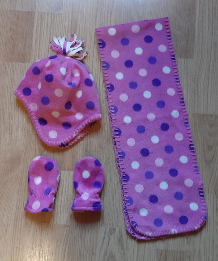 Ensemble d'accessoires d'hiver avec écharpe, bonnet et gant assortis - photo numéro 1