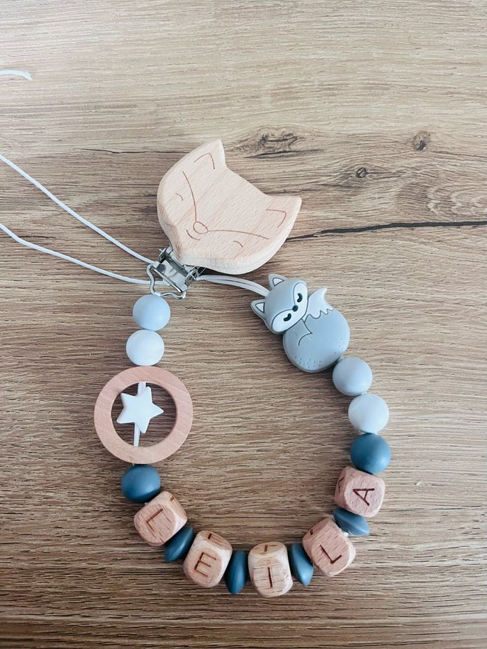 Attache tétine personnalisé en silicone ou en bois au souhait de l’acheteur . Personnalisable au choix de l’acheteur que ce soit la couleur comme le prénom ou le thème . Le fil est doublé pour plus de sécurité tout le long de l’attache tétine. N’hésitez pas à me demander et regarder mon dressing. Une photo vous sera envoyée avant l’expédition pour vous ayez un aperçu du rendu. Tous les produits sont réalisés avec du materiel spécial conçu aux bébés , enfants.