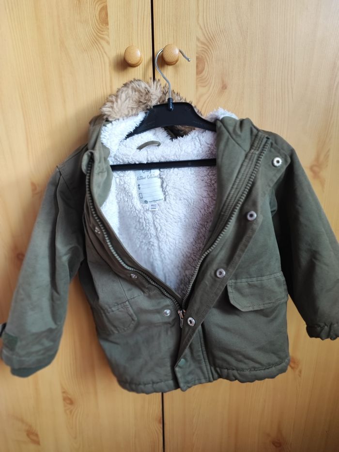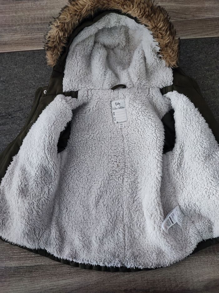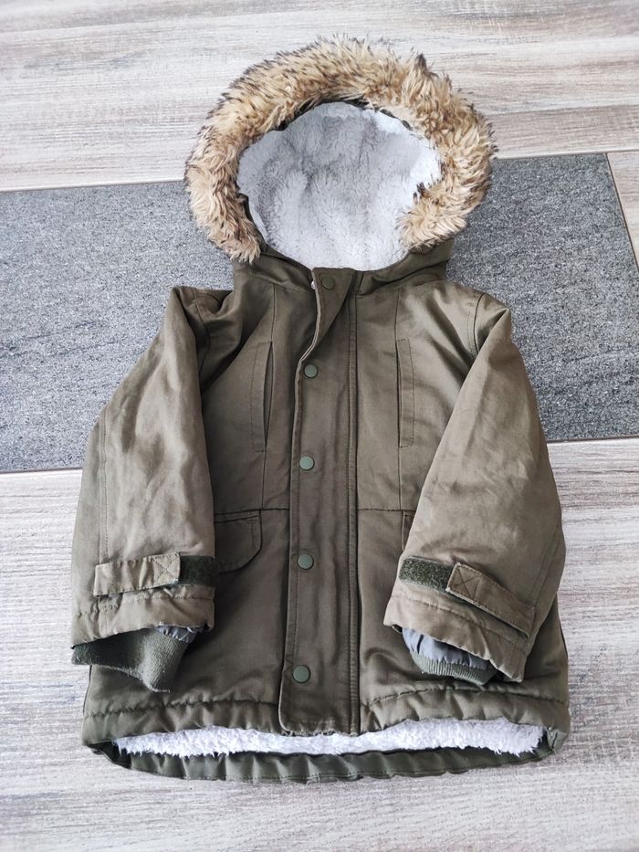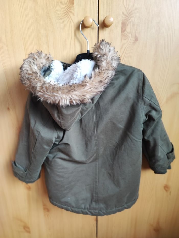 Manteau vert kaki, intérieur bien chaud. On peut retirer la moumoute sur la capuche. Première main.