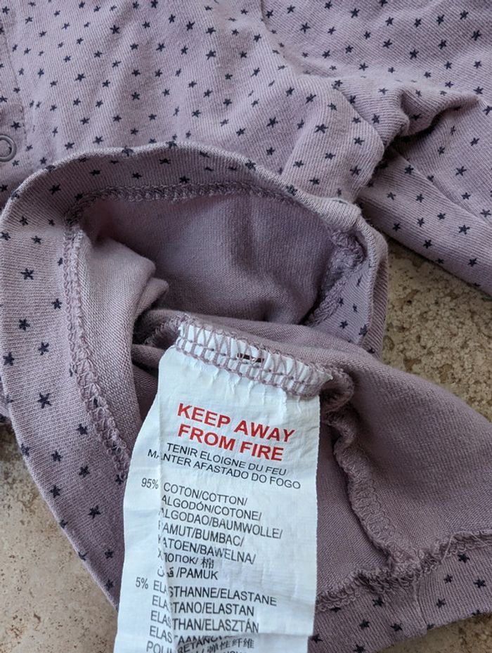 Haut manches longues kitchoun taille 6 mois Mauve avec motifs étoiles Coton 95%elasthanne 5%