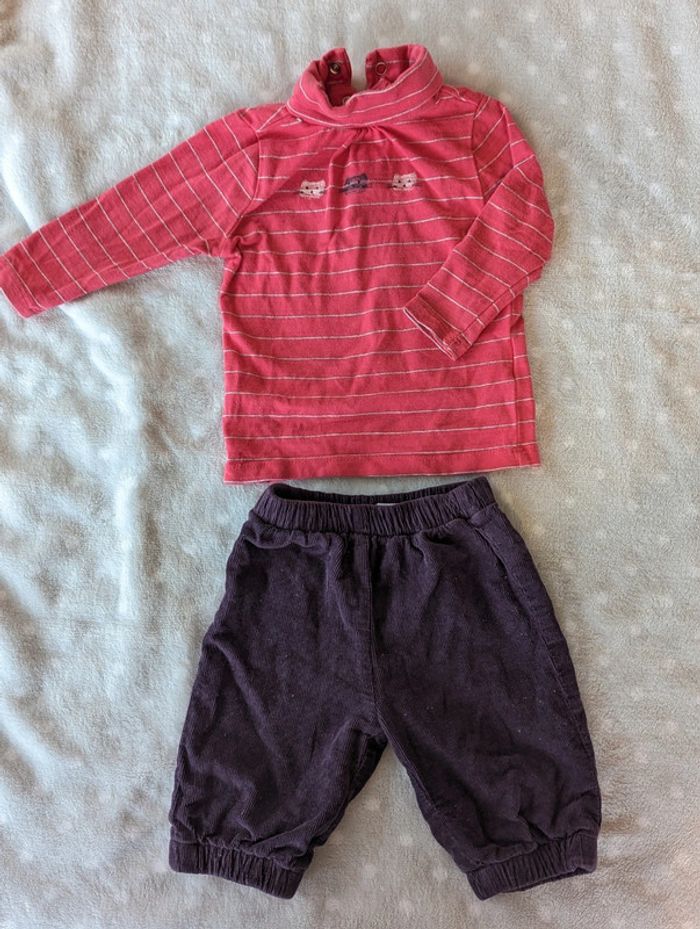 Ensemble 3 mois pantalon velours côtelé + sous-pull
