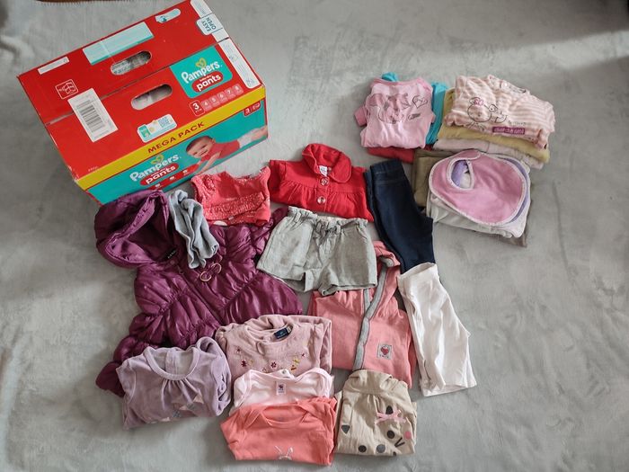 Gros paquet de Pampers T3 et vêtements bébé filles 6/12 mois - photo numéro 2