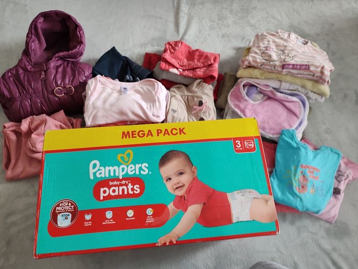 Gros paquet de Pampers T3 et vêtements bébé filles 6/12 mois - photo numéro 1