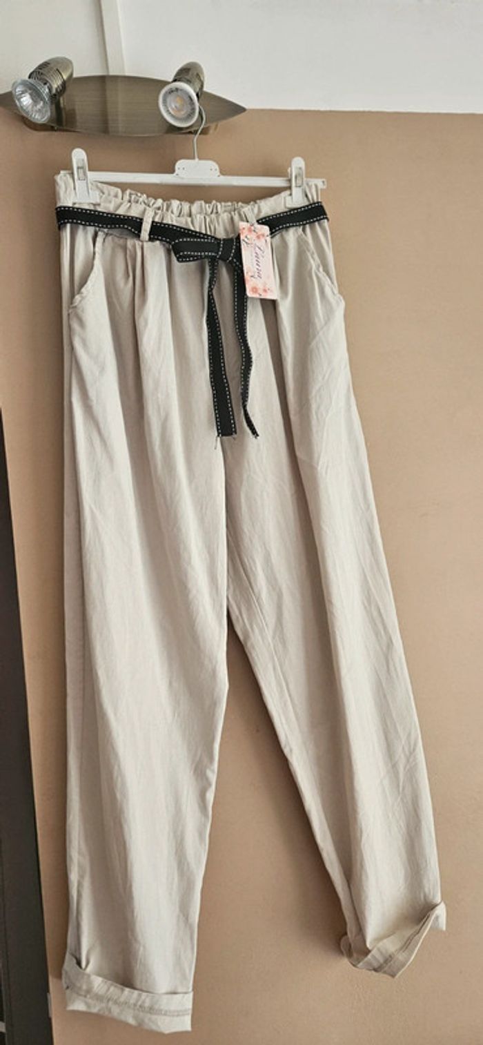 Pantalon paperbag neuf beige - photo numéro 2