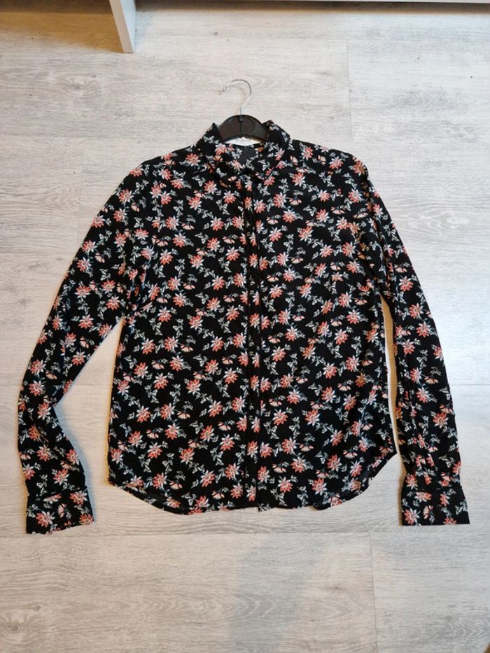 Chemise noire à fleurs promod Étiquette de taille coupée mais convient à un XS - photo numéro 6