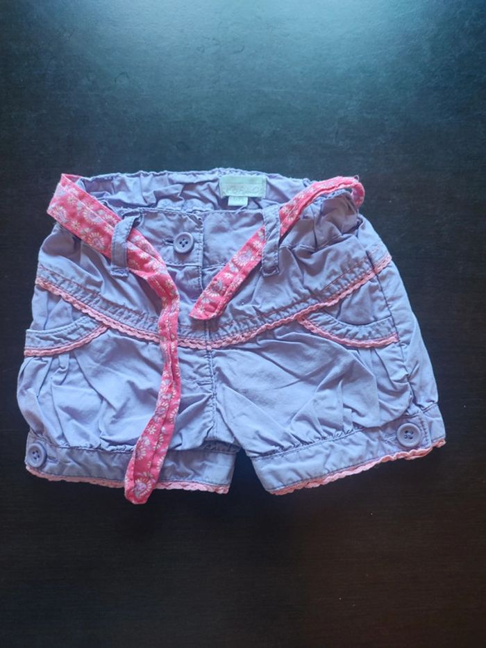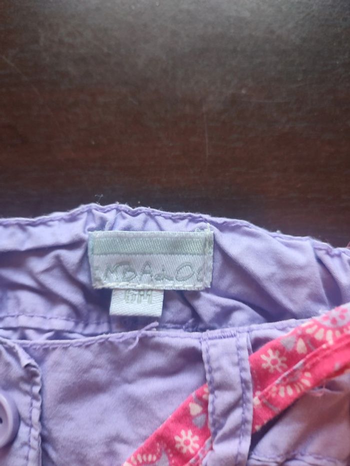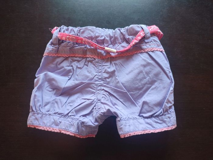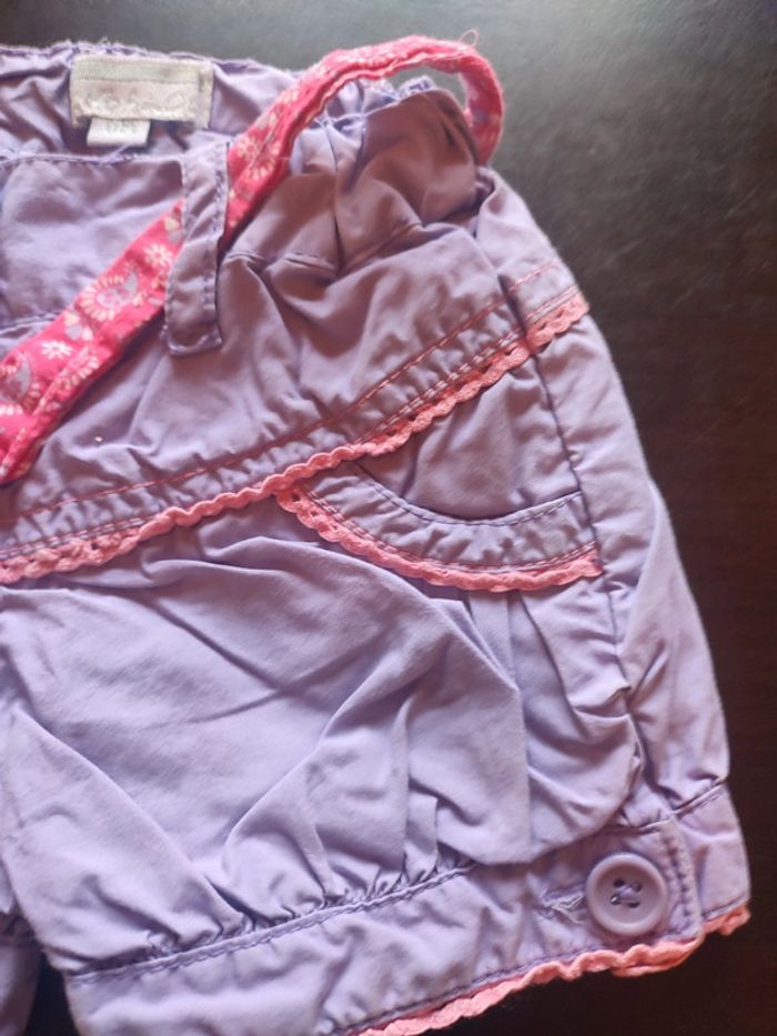 Short KIMBALOO Lilas & rose Fermé par bouton & ceinture à nouer Taille ajustable 100% Coton TAILLE 6 MOIS TRES BON ETAT Allez voir mes autres ventes!