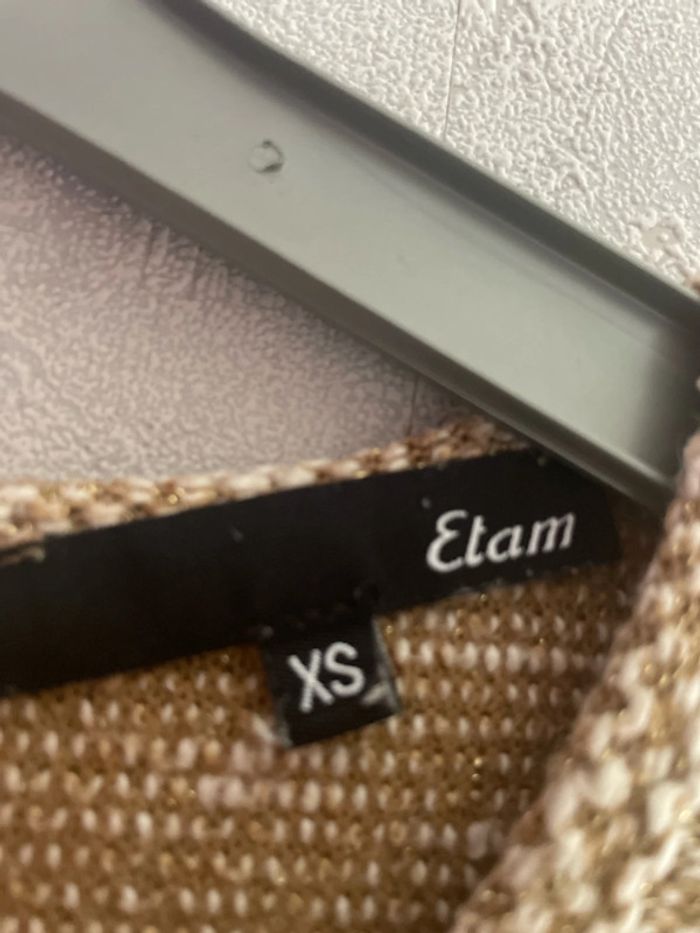 Pull etam manche 3/4 Taille xs Fermeture très jolie derrière Peut convenir pour la mi saison car assez léger