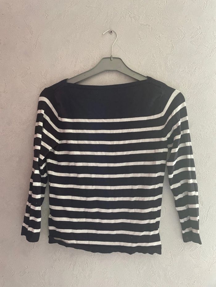 Pull manche 3/4 rayée bleu marine Marque h&m taille xs Col comme une marinière qui rend très jolie