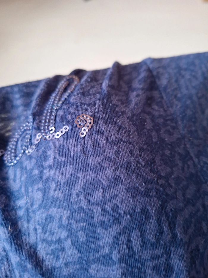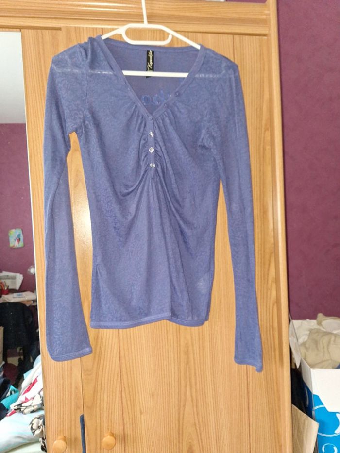 Couleur bleu violine Col en V Parfait état manque quelques perles au dos cf photo