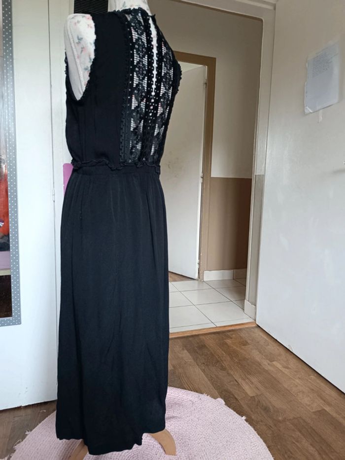 Robe longue SUNCOO Noire Magnifique dos ajouré Fermée par 1 bouton Doublée TAILLE 3 TRES BON ETAT Allez voir mes autres ventes!