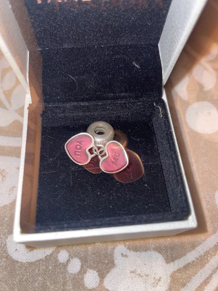 En bon état, charm en forme de cœur de chez pandora avec zirconium au centre du cœur. Se sépare en deux avec un inscrit you et l’autre me #charmcoeur #charmpandora #amour #love #meandyou