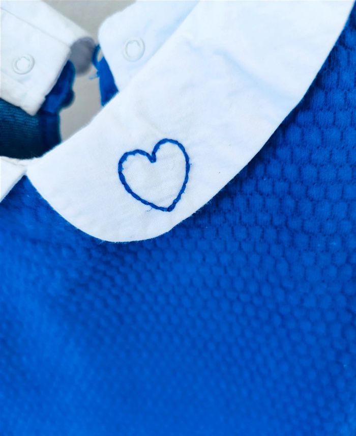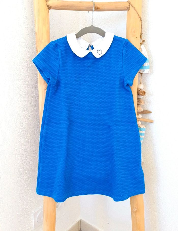 Robe Okaïdi bleu roi col claudine blanc avec coeur brodé, coton épais #loulaliefille6ans dans la recherche pour voir tout mon 6 ans Kiabi seconde main ou beebs possible