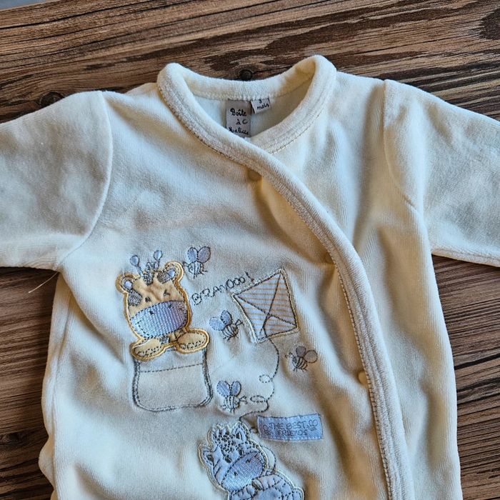 Pyjama en velours, jaune motif girafe. Ouverture à l'avant. Taille 3 mois Marque Boîte à malices. Très bon état. #bbtony_garcon_3mois Réductions activées : - 20% à partir de 2 articles - 30% à partir de 3 articles - 50% à partir de 5 articles