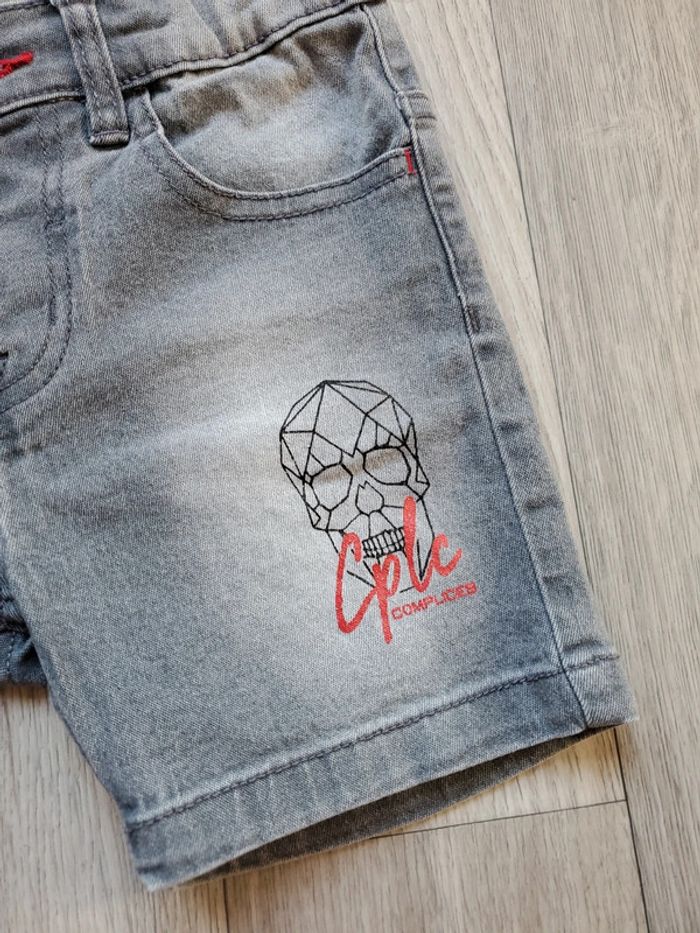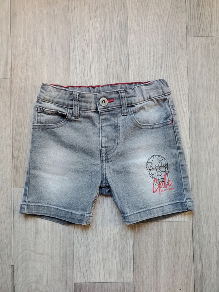 Short gris, avec motif tête de mort sur le devant, poches latérales, élastiques de serrage à la taille, bouton à trou devant 5 ans / COMPLICES Très bon état #5ansboulie2318