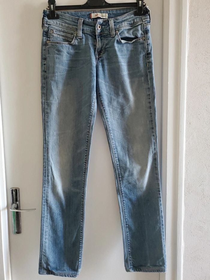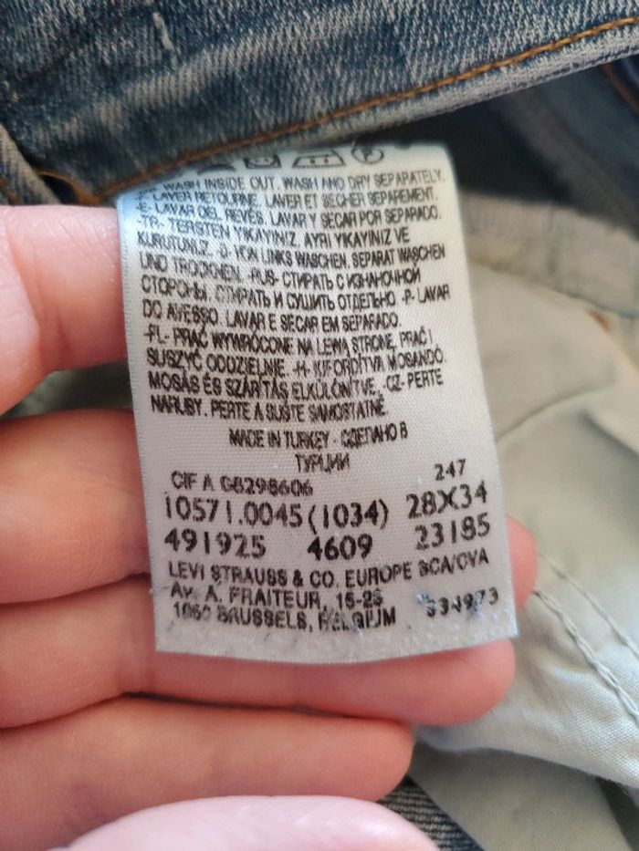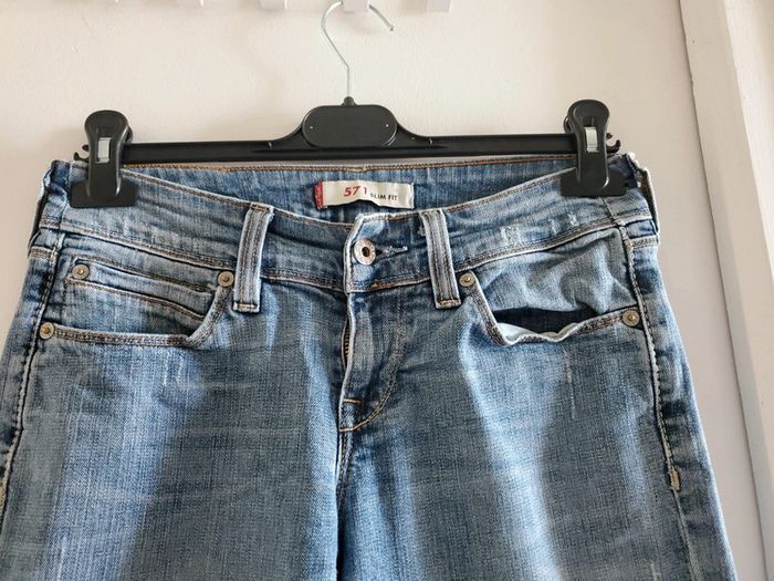 Jean LEVI'S 571 T.28/34 (correspond à un 38) Longueur du pentalon de la ceinture jusqu'en bas : 94 cm Longueur de la ceinture jusqu'à l'entre jambe : 21 cm Très bon état #jeansetpantalonsboulie2318