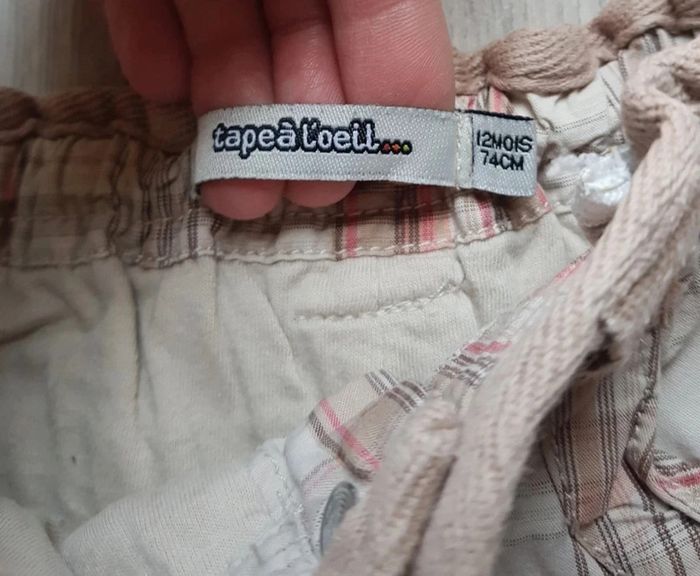 Pentalon ajustable à la taille avec élastiques, doublure à l'intérieur, convertible en short Beige, rose, Orange, marron 12 mois / TAPE À L'OEIL / Garçon Très bon état #12moisboulie2318