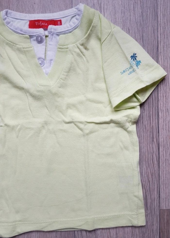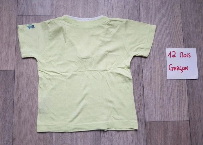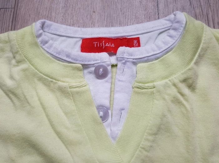 T-shirt Manches courtes, blanc et vert anis (voir dernière photo pour la vrai couleur) 12 mois / TISSAÏA / Garçon Très bon état #12moisboulie2318