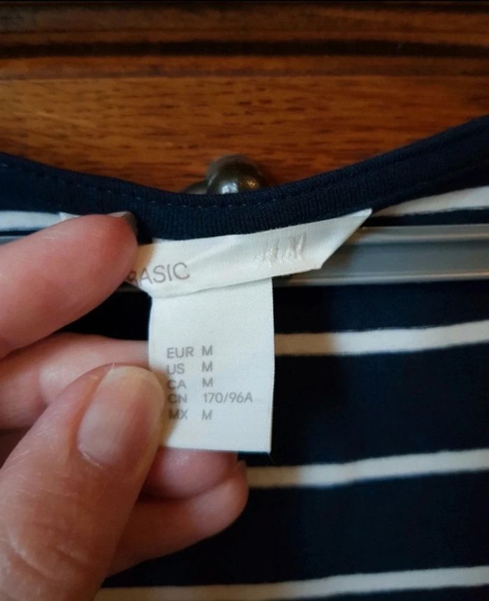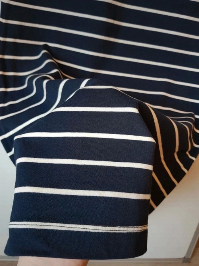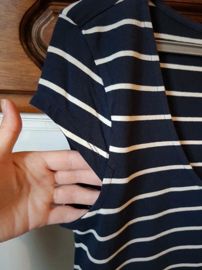 Robe à rayures blanches et bleues marine avec petites manches courtes Étiquette intérieur coupée Longueur: 83 cm H&M / T.M Très bon état #robesboulie2318 #boulie2318taille38