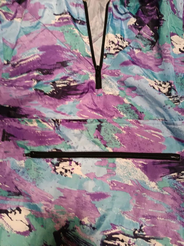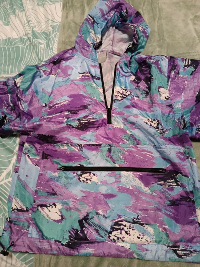 Imperméable forme sweat ( passage par la tête) Imprimé, avec grande poche devant servant aussi pour republier l'imperméable