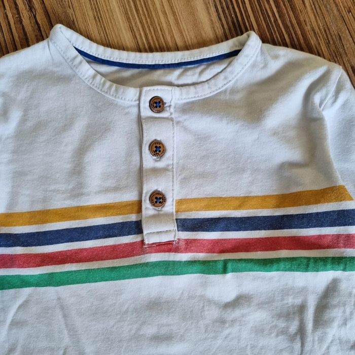 Tee-shirt blanc et rayures multicolores, manches longues. Boutons au col. Taille 12 mois, 80 cm. Marque Grain de Blé. Bon état général. #bbtony_garcon_12mois Réductions activées : - 20% à partir de 2 articles - 30% à partir de 3 articles - 50% à partir de 5 articles