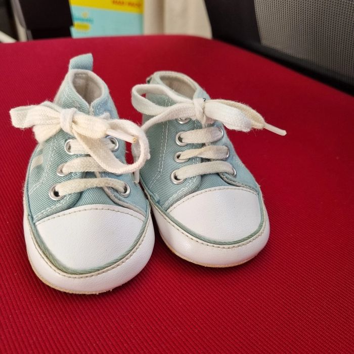 Chaussures turquoise, avec inscription "32" sur le côté. Fermeture à lacets, légèrement montantes. Taille 0/6 mois. État moyen, couleur délavée et un bon lavage s'impose ! #bbtony_garcon_6mois Réductions activées : - 20% à partir de 2 articles - 30% à partir de 3 articles - 50% à partir de 5 articles