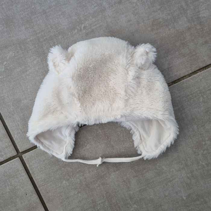 Bonnet blanc, tout doux style sherpa. Fausses oreilles. Liens scratch pour le nouer. Marque Kitchoun. En excellent état. Étiquette coupée, mais idéal 6 mois. #bbtony_garcon_6mois Réductions activées : - 20% à partir de 2 articles - 30% à partir de 3 articles - 50% à partir de 5 articles