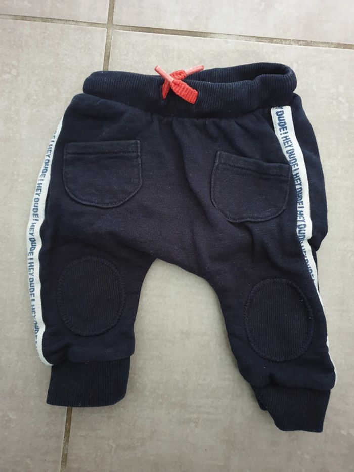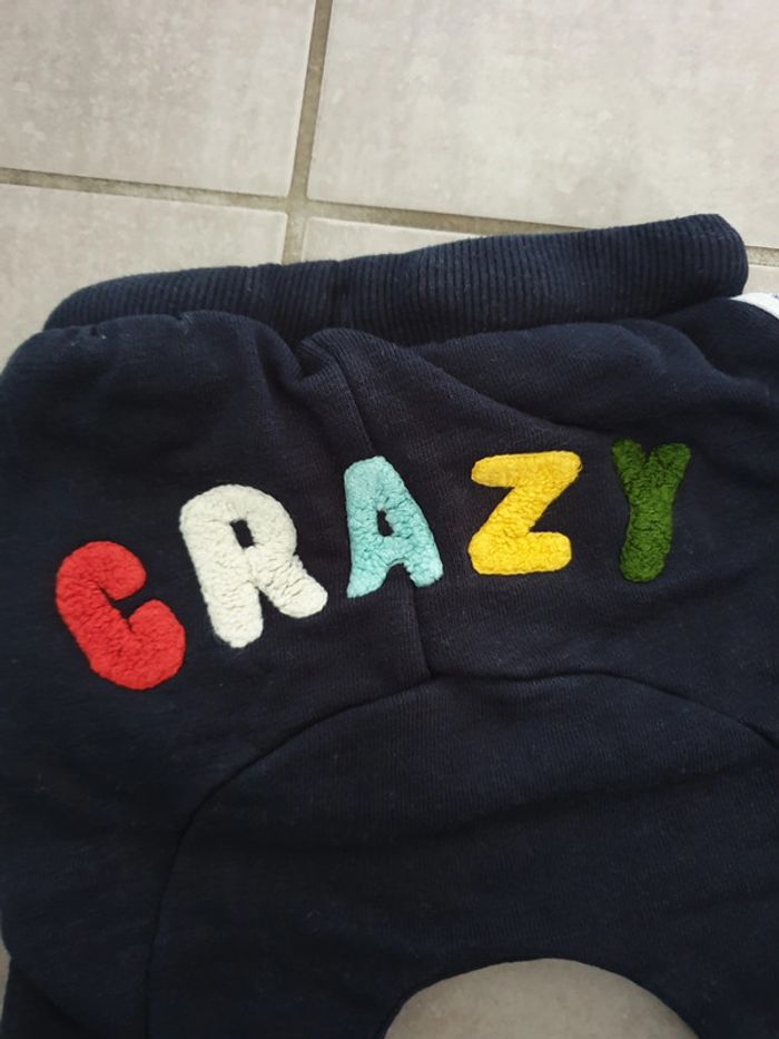 Jogging bleu marine, Taille élastique. 2 poches avant et inscription CRAZY à l'arrière. Marque Kiabi. Taille 3 mois 56/62 cm. En bon état général. #bbtony_garcon_3mois Réductions activées : - 20% à partir de 2 articles - 30% à partir de 3 articles - 50% à partir de 5 articles