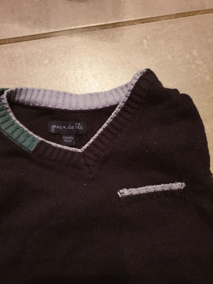 Pull sans manches, fermeture par boutons sur l'épaule. Marque Grain de blé. Taille 3 mois, 60 cm. Très bon état général. #bbtony_garcon_3mois Réductions activées : - 20% à partir de 2 articles - 30% à partir de 3 articles - 50% à partir de 5 articles