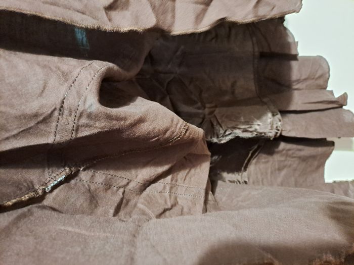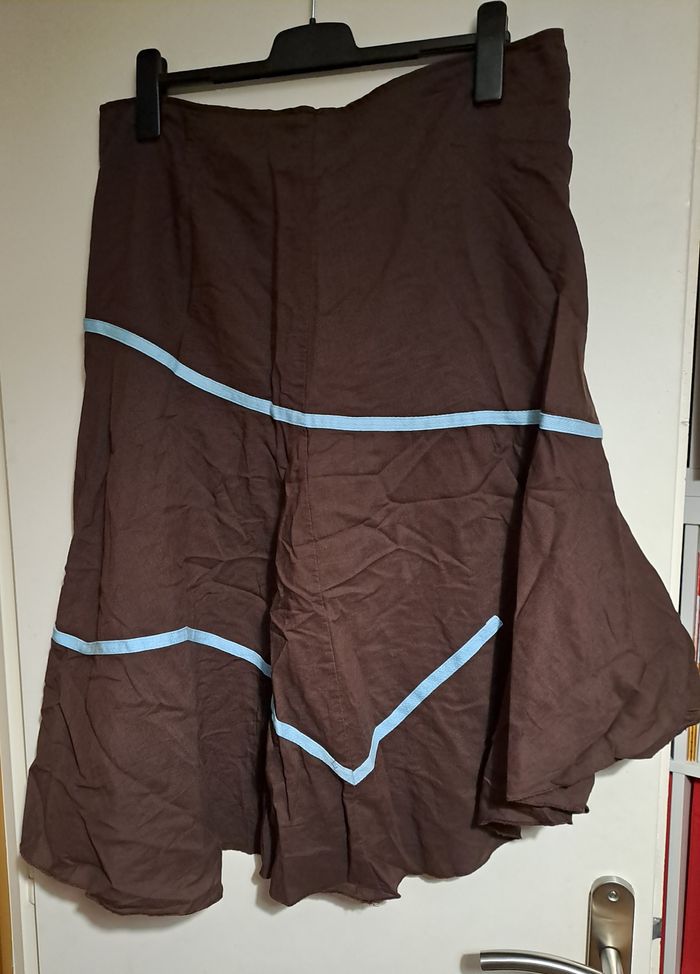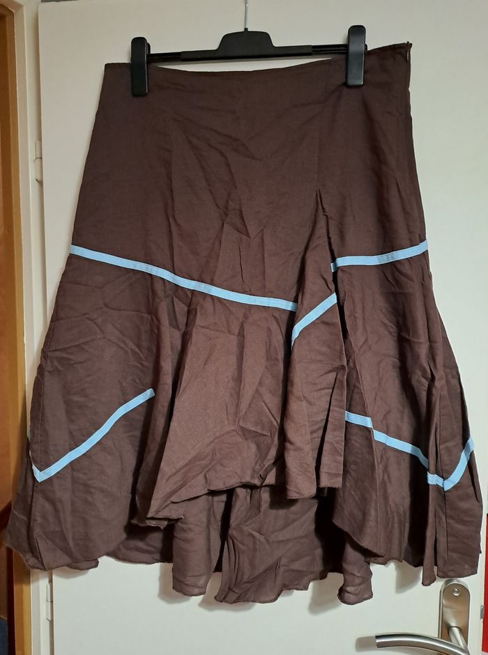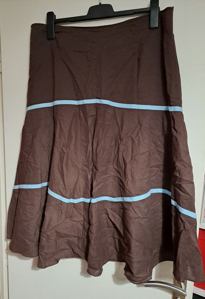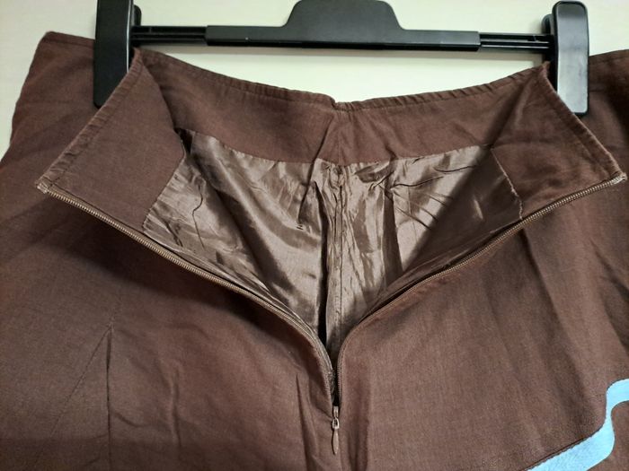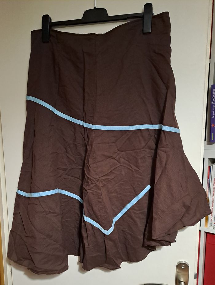 Jupe en taille 46. Peut se porter de 2 façons différentes, soit avec la fermeture éclaire dans le dos ou la fermeture éclaire sur le côté. Non repassé.
