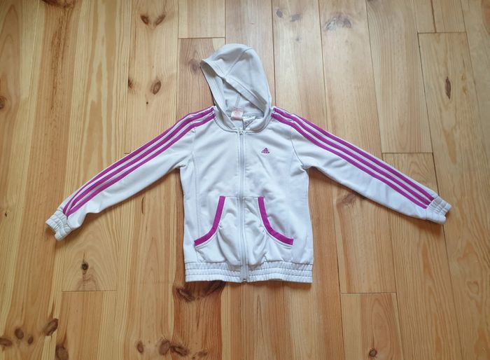 Sweat zippé Adidas 11-12 ans à capuche Blanc et bandes violine